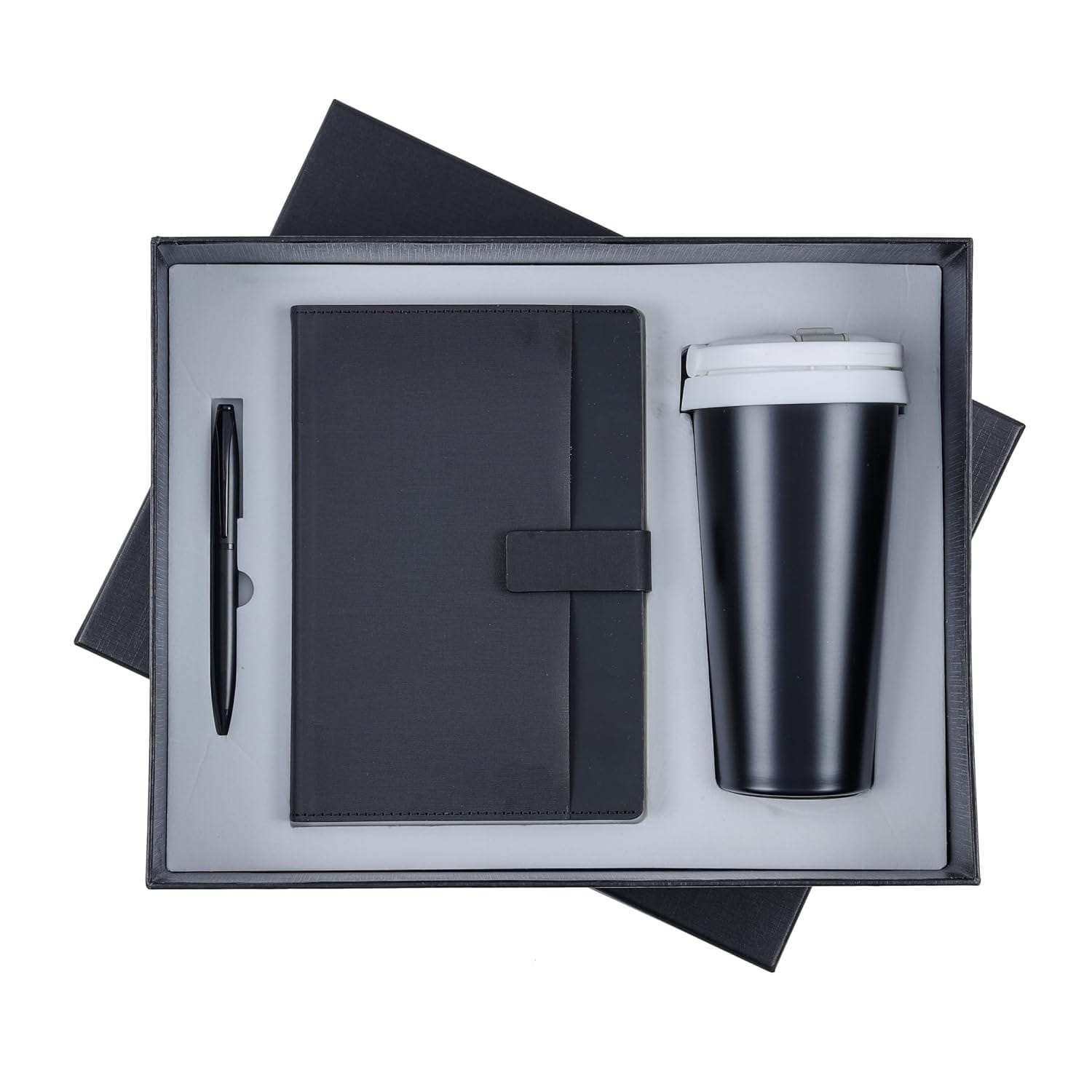 Notebook, Elegant Pen, and Insulated Travel Mug – Ideal Corporate Gifts for Employees, Clients, and Business Partners 3 in 1 BLack