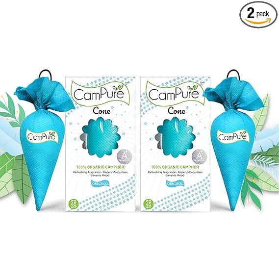 CamPure Camphor Cone (Original) Pack Of 2-100% Organic | Air Freshener For Car, Wardrobe, Office Cabin’s, Drawers, Travel Bag & Bathroom